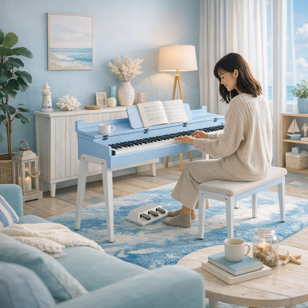OURA S200 最吸引人的地方,在於它以海浪紋理外觀作為設計主題。整體視覺帶有柔和、療癒、帶點海岸感的氣息,不論擺在客廳、書房還是個人創作空間,都能自然成為空間焦點。對很多人來說,選琴早就不只是「能不能彈」,而是「放在家裡會不會好看、會不會讓人更想練習」,這正是 S200 很有魅力的地方。