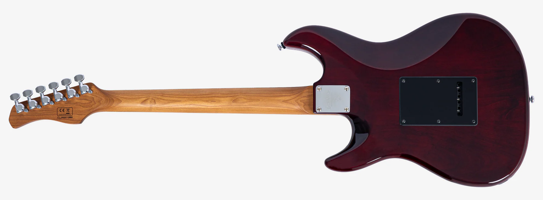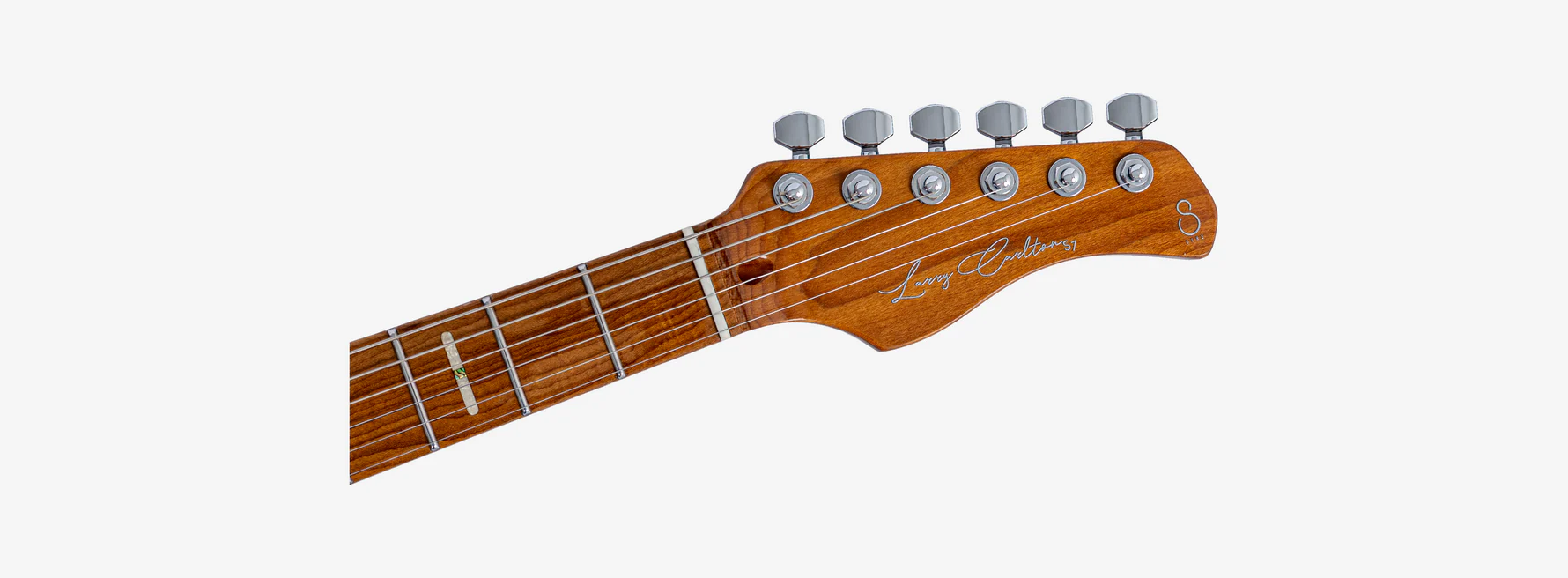 S7 Ash Top 採用 北美赤楊木琴身,搭配 實心白蠟木面板。這樣的組合本身就很有吸引力,因為赤楊木向來是非常經典、平衡性高的電吉他木材,聲音分布自然,乾淨音色表現清楚,搭配各類效果器時也很容易整理出自己想要的聲音。再加上白蠟木面板之後,不只是外觀更有高級感,整體視覺層次也會比一般素面琴身更有存在感。