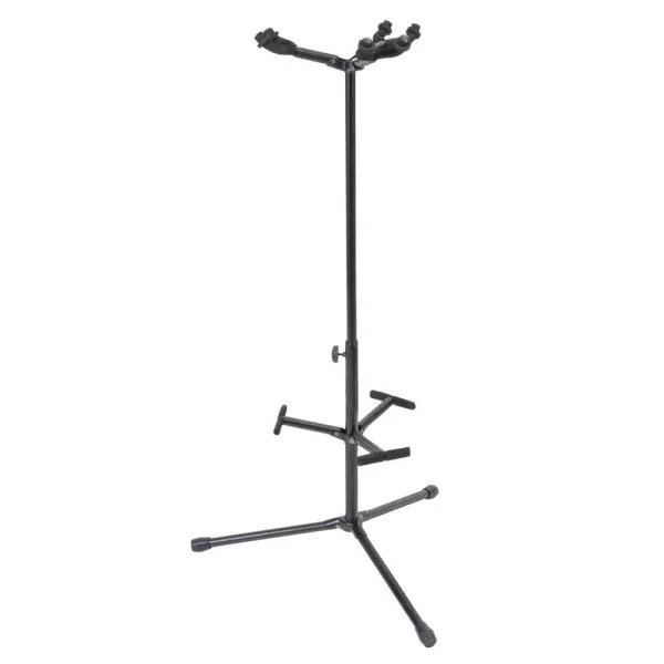 GS 系列的特色,在於它不是只有「把琴放著」而已,而是把穩定度、相容性與拿取便利性都放進設計裡。以 GS7155 來看,官方特別提到它可對應傳統外型的木吉他、電吉他與貝斯,並且有防護墊與可折收結構;像 Flip-It GS7153B-B 則加入自動扣合式琴頸固定設計,對於店面陳列或日常使用來說更有安全感