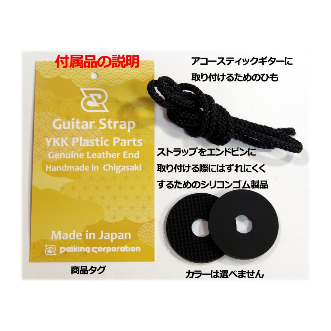 為了保護您的吉他,Daiking 吉他背帶特意選用了不會損傷吉他的塑料配件(YKK製),並且使用日本製的專業布料作為背帶內襯,提供柔軟的觸感與舒適感。此外,背帶的末端(根革)選用日本革工廠製作的牛本革,既堅固又具有高檔感,長時間使用也不容易損壞。