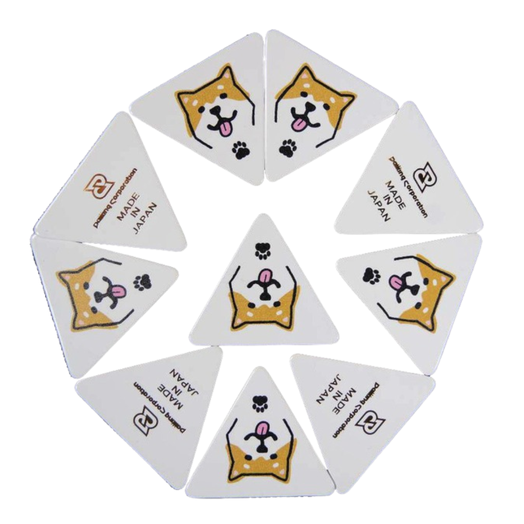 Daiking 原創柴犬吉他彈片採用硬質 PVC 材質製作,厚度 1.0mm、三角型設計,提供穩定清晰的彈奏回饋與良好控制感。PVC 材質不易掉色、不易變形,適合長時間使用與反覆演奏。日本製造品質細緻,兼具實用性與獨特設計感,不論是日常彈奏、舞台使用或作為收藏品,都極具辨識度與話題性。