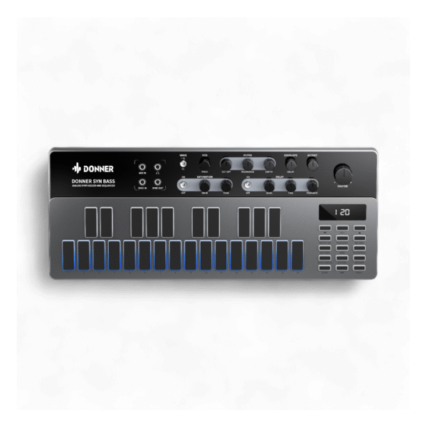 Donner Essential B1 合成器榮獲 2022 紅點設計大獎,專為電子音樂製作與現場演出打造。內建 128 組預設音色與直覺步進音序器,能快速編寫旋律與節奏。矽膠背光觸控鍵盤提供靈敏操作手感,搭載類比濾波與延遲效果,重現經典深沉低音與電子氛圍。
