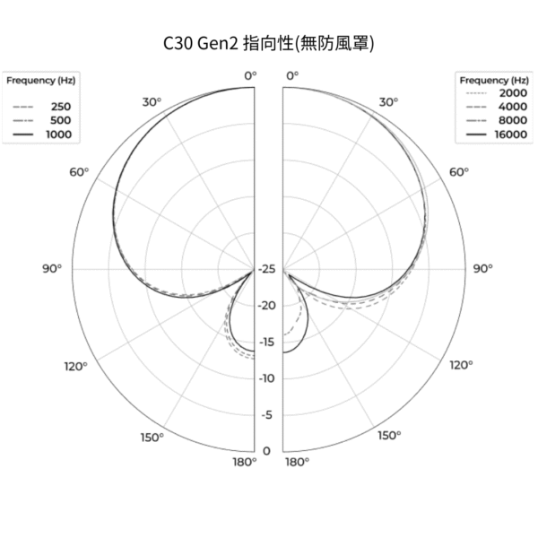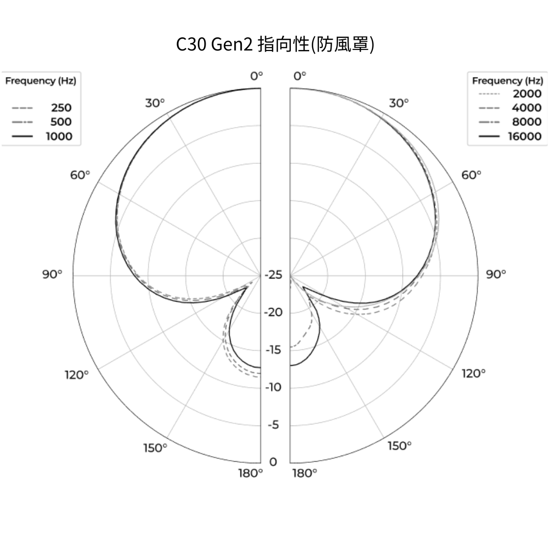 - 超心型指向於全頻範圍內維持一致收音角度。