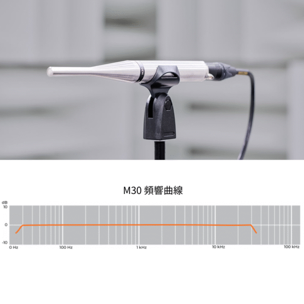 - M30 為大中小型空間校正設計,適用 Smaart、MLSSA、SIMM、TEF 等量測系統。