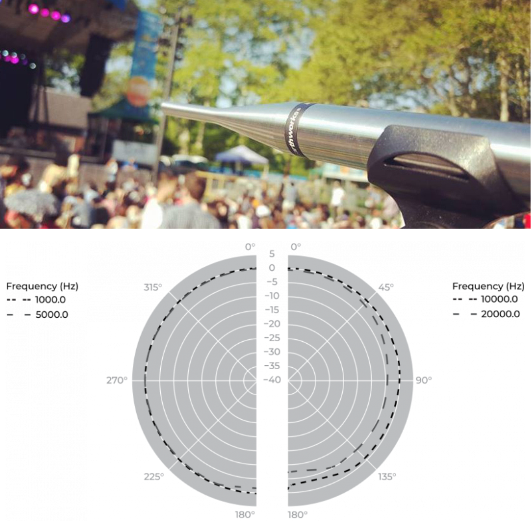 - 全指向收音於軸向與離軸方向皆保持一致靈敏度。