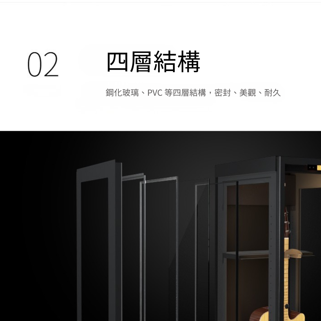 - 濕度範圍可設定為 40%–60% RH,符合樂器保存需求。