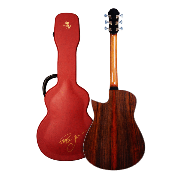 「翼系列」由 Naga Guitars 與指彈巨星 押尾光太郎(Kotaro Oshio) 攜手打造。從音色方向、弦距設定、外觀細節到琴箱顏色,皆由押尾本人反覆確認,是一把忠實呈現其音樂理念的簽名級樂器。