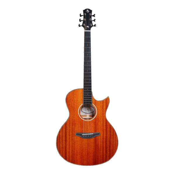 Naga S-50 GAC 為光系列高階全單板款,採用非洲桃花心木面板與背側板,音色溫暖飽滿、延音自然柔順。搭載桃花心木琴頸與科技黑檀指板,手感滑順穩定。40 吋 GA 桶身具良好投射與豐富共鳴,搭配典雅楓木鑲嵌細節,是指彈、民謠與彈唱風格皆能勝任的優質全單木吉他。