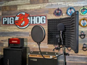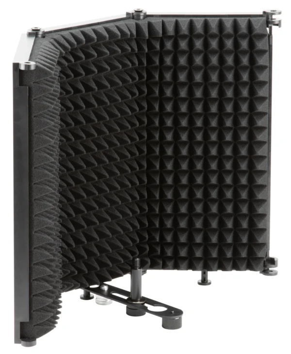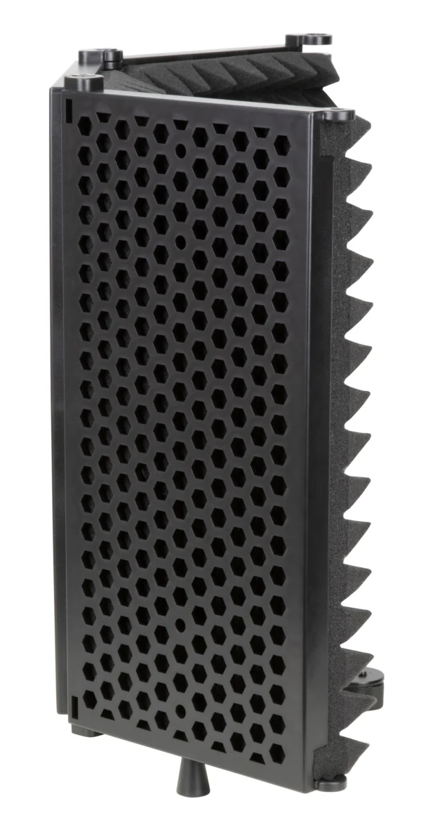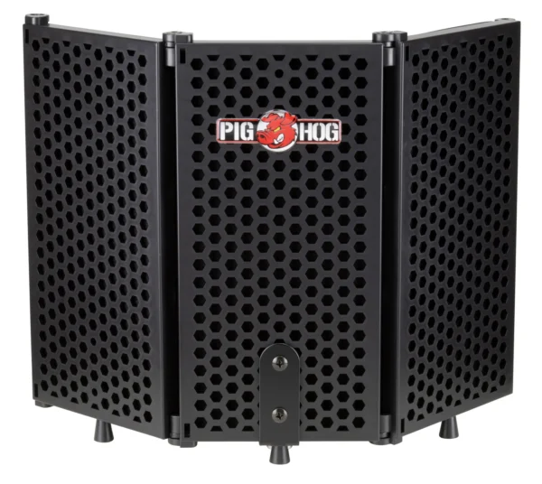 Pig Hog 麥克風隔音盾,結合三片可調式多孔塑料面板,能有效阻絕聲波反射,避免錄音中的音染問題。內層加厚泡棉設計,進一步吸收噪音與雜音。可輕鬆摺疊收納,適合行動錄音或固定式錄音室使用,提供靈活且強大的錄音防護。