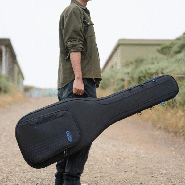 Reunion Blues RBC23B4 貝斯琴袋,採用 Flexoskeleton™ 吸震骨架與防磨外層,兼具輕量與極致防護。配備可調式頸托、防水拉鍊、隱藏式背帶與 Zero-G 握把,並支援 SideKick™ 擴充掛袋系統。專為巡演與長途旅行設計,提供頂級安全防護與便捷攜行體驗,是專業貝斯手的完美選擇。