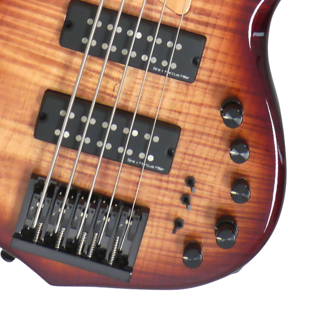控制項:音量/音色(雙軸)、拾音器混合、高頻、中頻/中頻頻率(雙軸)、低頻、主動/被動切換、拾音器串聯/單線圈/並聯切換