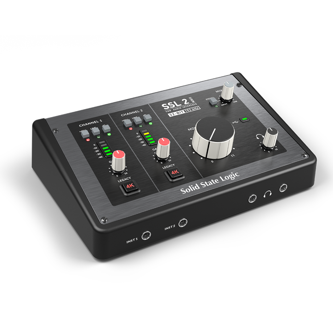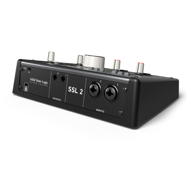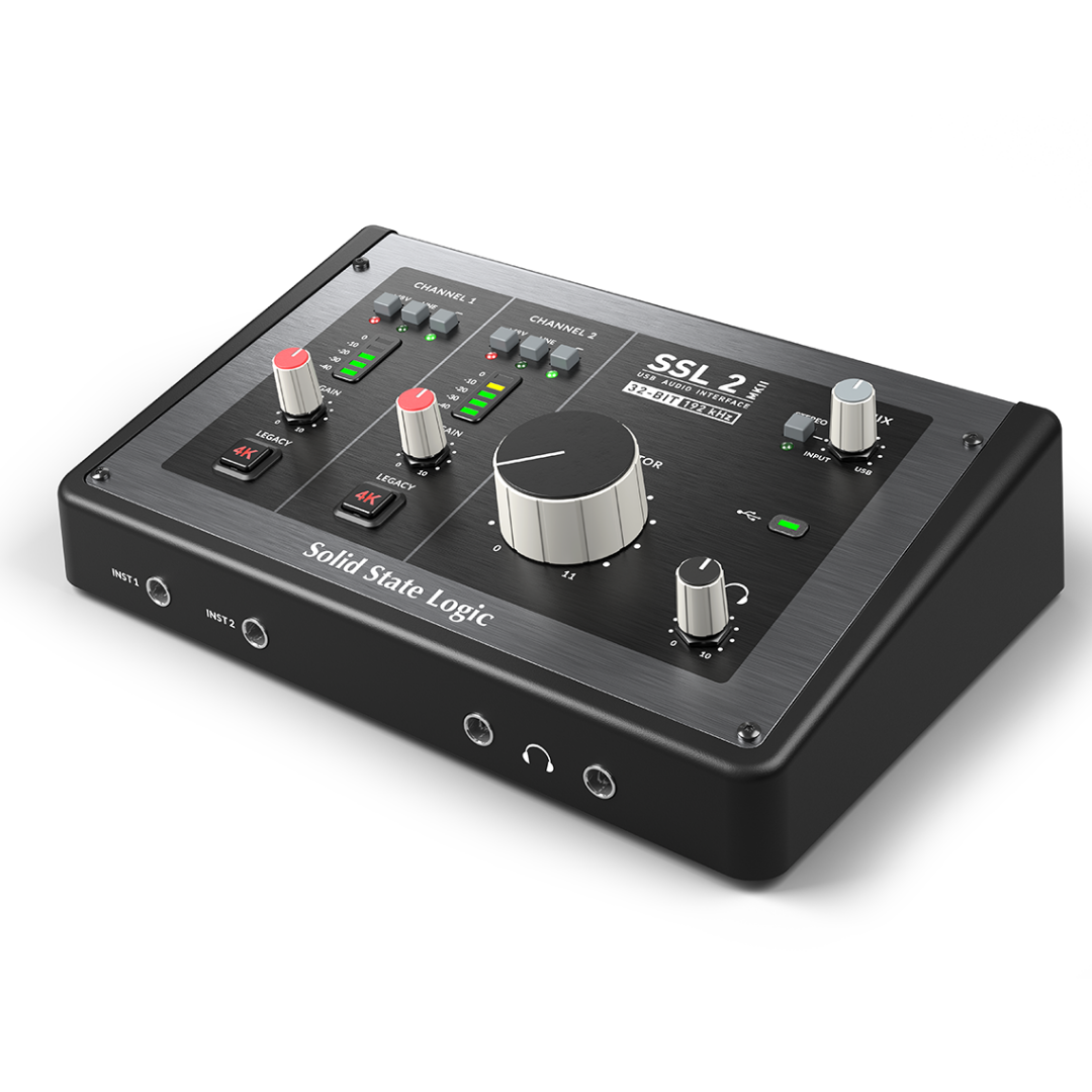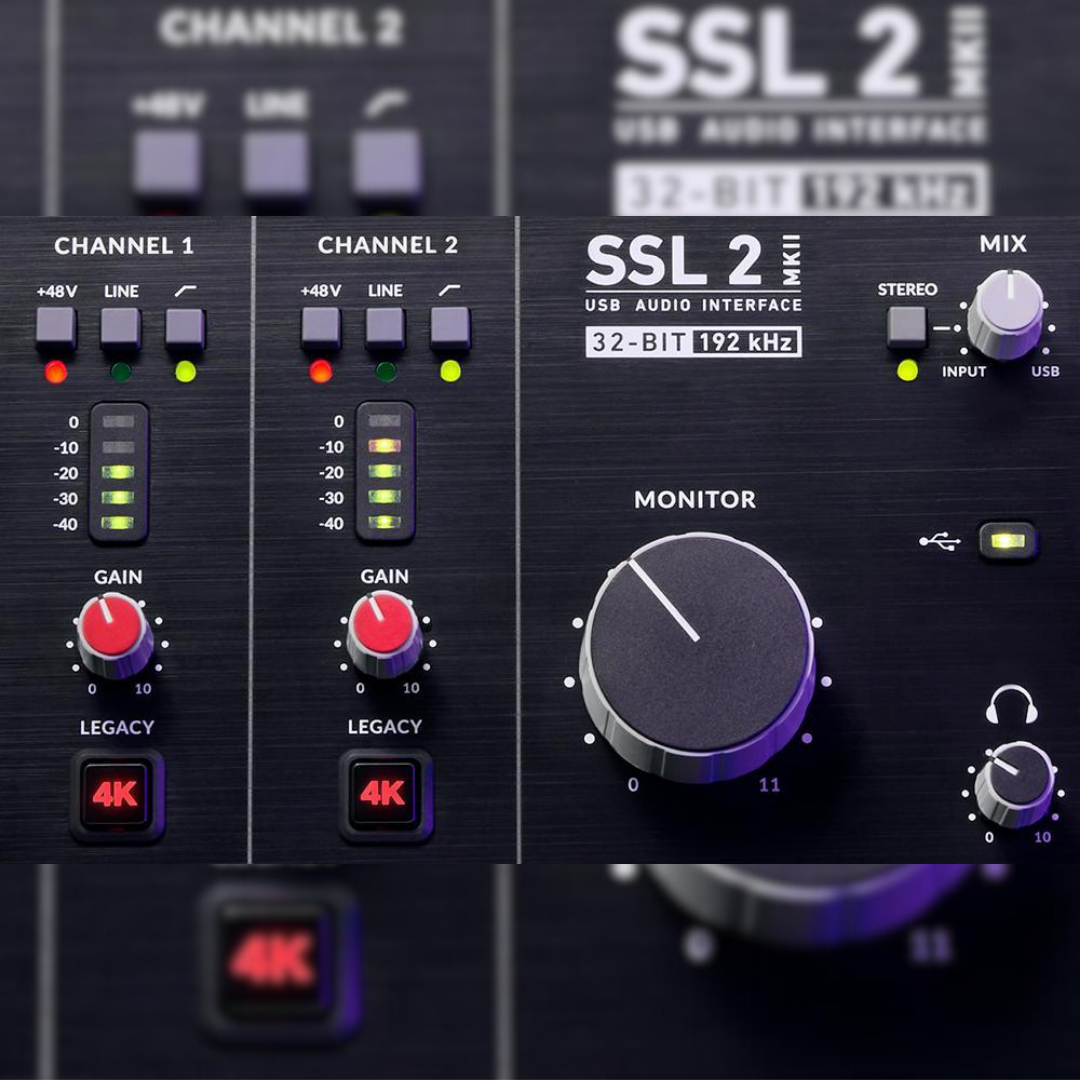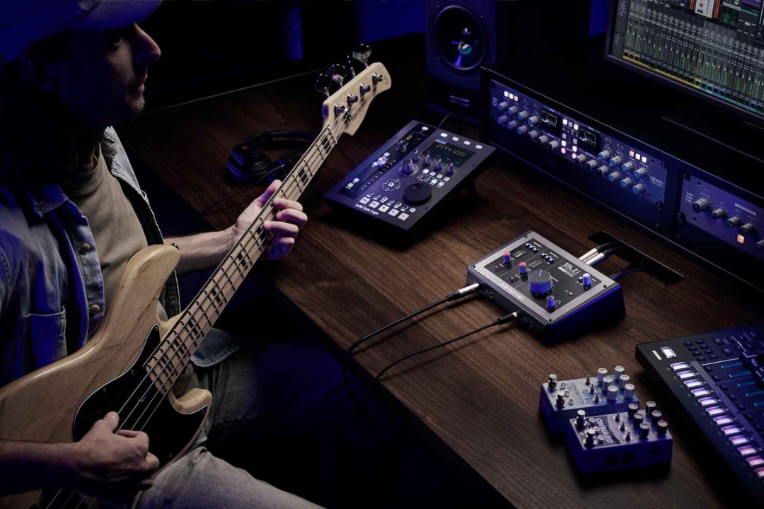 2 組 SSL 類比麥克風前級,含 Line / Instrument 模式與 48V 幻象電源。
