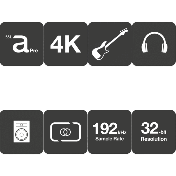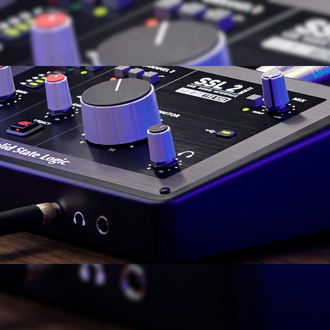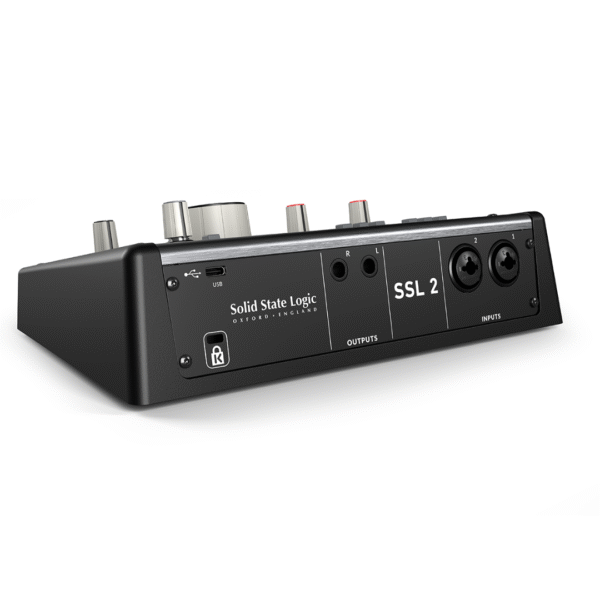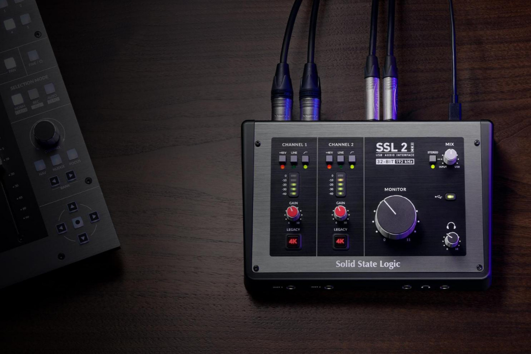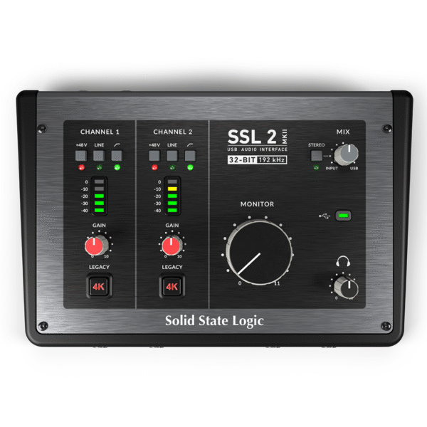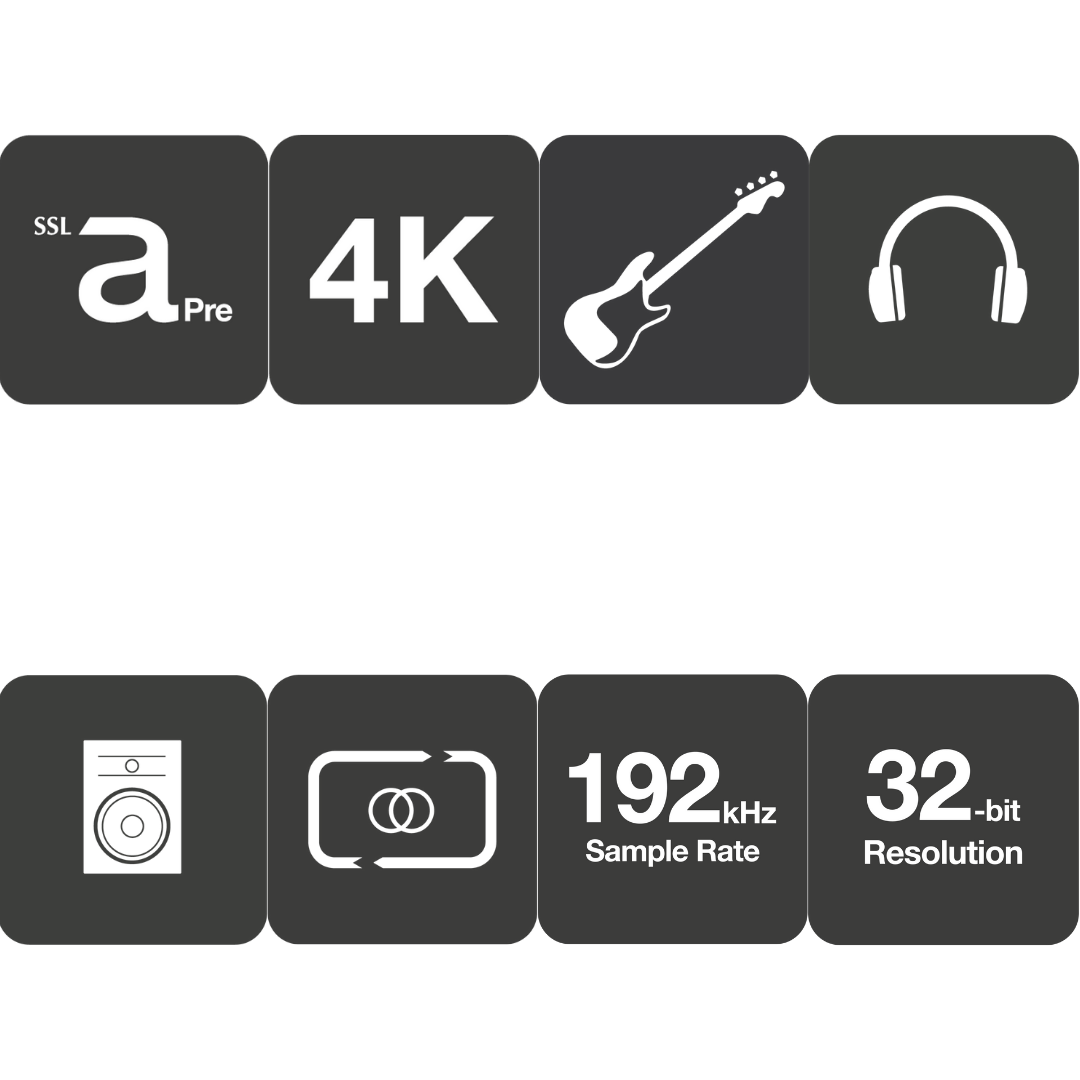2 組 SSL 類比麥克風前級,含 Line / Instrument 模式與 48V 幻象電源。