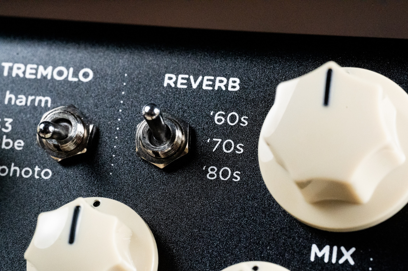 - 雙側具備 ±3dB Boost/Cut,可針對 Tremolo 與 Reverb 各自微調音量。