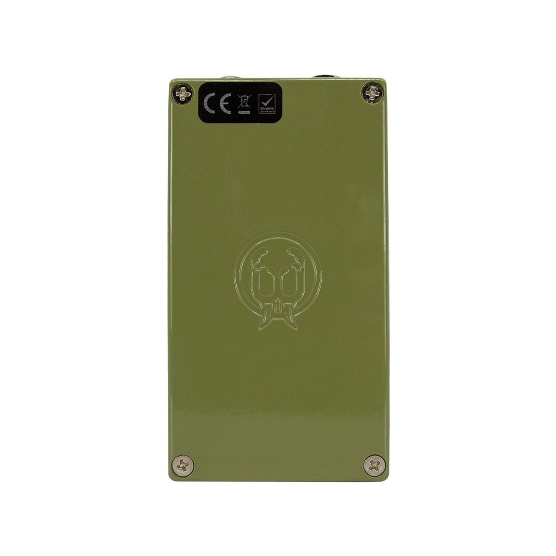 此外,低音(Bass)旋鈕可在訊號進入過載前進行增益或衰減,提供更靈活的音色塑造能力。插畫由 Adam Forster 設計,圖案為三鼻戰象,象徵強大且堅定的音色。