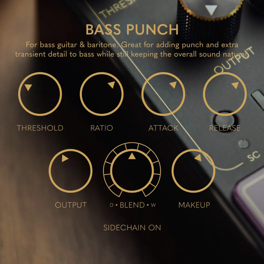 - 可保留低頻衝擊感與動態表現,特別適合貝斯與延伸音域電吉他使用。