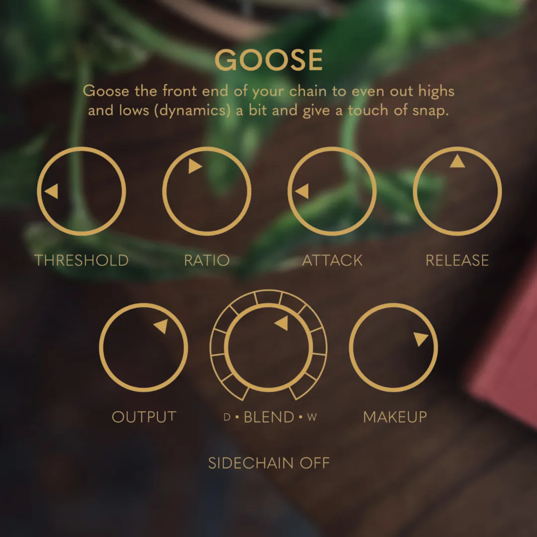 - Blend 提供真正的 parallel compression,可在保留音頭的同時加入密度與延音。